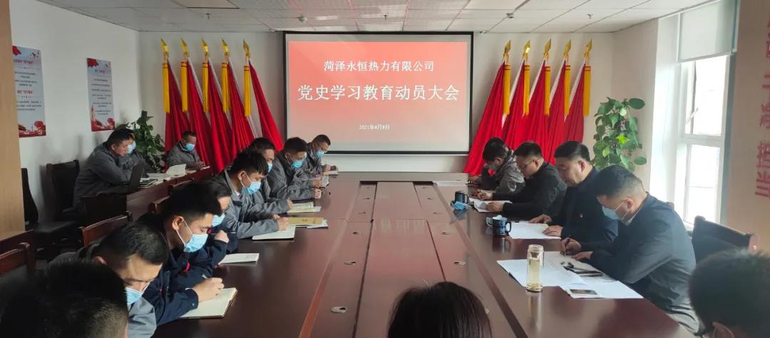 為進(jìn)一步提高黨員干部學(xué)黨史、強(qiáng)信念的主動性和積極性,推動黨史學(xué)習(xí)教育真正學(xué)有所悟、學(xué)有所成,4月8日,菏澤永恒熱力召開黨史學(xué)習(xí)教育動員大會,對黨史學(xué)習(xí)教育進(jìn)行專題安排部署。會議由公司黨支部書記、董事長肖培飛主持,中層副職以上干部、全體黨員、入黨積極分子共計(jì)44人參加了會議。