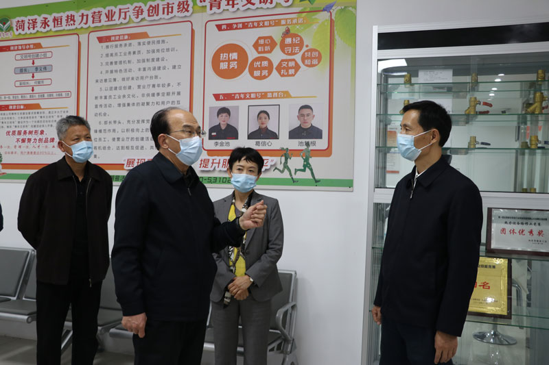 10月29日,市委副書記、市長張倫到永恒熱力服務大廳調(diào)研城區(qū)集中供熱工作。市政府副市長王忠想,市政府副秘書長、辦公室主任王新國,市政府副秘書長許尚欽,市發(fā)改委副主任、能源局局長宋述亮,市城管局局長王桂榮,市政府研究室主任劉建東,牡丹區(qū)委副書記、區(qū)長尹茂林等參加調(diào)研。菏投集團黨委書記、董事長徐文芹,菏投集團黨委委員、副總經(jīng)理、永恒熱力黨支部書記、董事長肖培飛陪同調(diào)研。