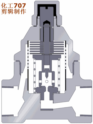 彈簧式安全閥結(jié)構(gòu)輕便緊湊,靈敏度也比較高,安裝位置不受限制,而且因為對振動的敏感性小,所以可用于移動式的壓力容器上。這種安全閥的缺點是所加的載荷會隨著閥的開啟而發(fā)生變化,即隨著閥瓣的升高,彈簧的壓縮量增大,作用在閥瓣上的力也跟著增加。這對安全閥的迅速開啟是不利的。另外,閥上的彈簧會由于長期受高溫的影響而使彈力減小。用于溫度較高的容器上時,常常要考慮彈簧的隔熱或散熱問題,從而使結(jié)構(gòu)變得復(fù)雜起來。