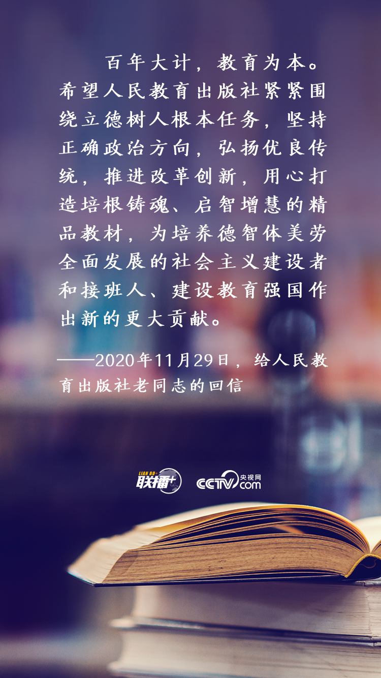 近日,習近平總書記給人民教育出版社部分離退休老同志回信。他希望人教社繼續(xù)“用心打造培根鑄魂、啟智增慧的精品教材”。 百年大計,教育為本。習近平總書記一貫高度重視培養(yǎng)社會主義建設者和接班人,不止一次對教材編研出版工作提出殷切期望。央視網(wǎng)《聯(lián)播+》為您梳理總書記有關(guān)精彩論述,與您一起學習領(lǐng)悟。
