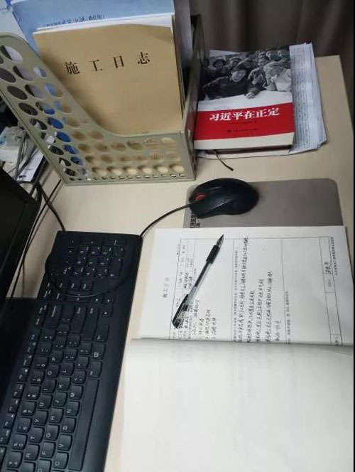 在畢敬賢的工作桌上,整齊地放著這樣一本本的施工日志,里面詳細(xì)記錄著各個(gè)工地每天的巡查情況,施工進(jìn)度、存在問題、意見建議、天氣影響等等,在備注處,還時(shí)不時(shí)有些他在工程技術(shù)和監(jiān)督管理方面的心得體會(huì)。我們發(fā)現(xiàn),很多個(gè)周六周日的時(shí)間,他都放棄了休息,或忙碌在項(xiàng)目工地上,或巡視在一線管網(wǎng),或風(fēng)風(fēng)火火奔赴搶修現(xiàn)場(chǎng)。