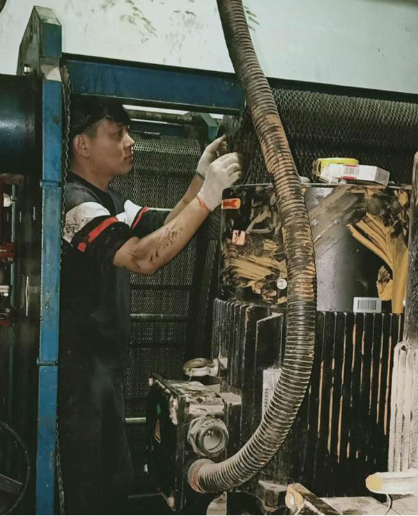 下午4時(shí)左右,在天闊逸城小區(qū)的換熱站內(nèi),家屬院角落處的供熱設(shè)備機(jī)房?jī)?nèi)悶熱狹小,空氣流通不暢,剛進(jìn)去一小會(huì)就已經(jīng)汗流浹背。運(yùn)營(yíng)管理四部部長(zhǎng)馬成喜正在和部門同事們清洗換熱器,沖洗換熱片時(shí),污漬大片濺到身上、衣服上,但是現(xiàn)場(chǎng)無(wú)一人抱怨,大家分工協(xié)作,輪流沖洗。