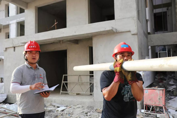8月18日,在黃河路過(guò)鐵路橋熱力管網(wǎng)鋪設(shè)現(xiàn)場(chǎng),工地現(xiàn)場(chǎng)管理員劉超和吳金生正頂著炎炎烈日盯防在工作一線,記錄施工日志,確保管網(wǎng)建設(shè)工作安全有序進(jìn)行。這個(gè)項(xiàng)目的建設(shè)關(guān)系到城區(qū)北部幾萬(wàn)戶居民的用暖效果,劉超和其他三個(gè)部門的同事輪流到項(xiàng)目施工現(xiàn)場(chǎng)進(jìn)行施工質(zhì)量、施工工藝、施工安全、材料驗(yàn)收、竣工驗(yàn)收等全過(guò)程的督察。