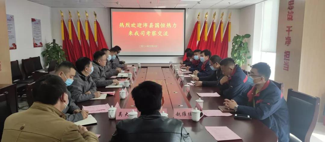 3月8日,沛縣國恒熱力有限公司副總經理魏建禮一行來到菏澤永恒熱力,進行供熱工作的考察交流。菏澤永恒熱力有限公司董事長肖培飛、總經理劉承軍等有關領導參加了座談。