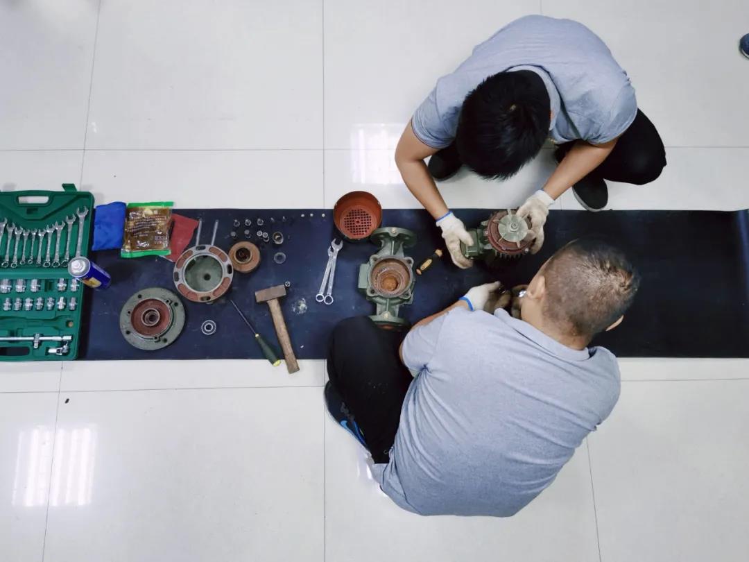 運(yùn)營(yíng)管理五部利用工作間隙,開(kāi)展此次技能比武活動(dòng)。活動(dòng)過(guò)程中,王志剛、高保山現(xiàn)場(chǎng)示范講解循環(huán)泵拆卸、安裝方法及軸承和水封更換、保養(yǎng)流程標(biāo)準(zhǔn),同事之間兩兩搭檔,操作練習(xí)并進(jìn)行技能大比拼。