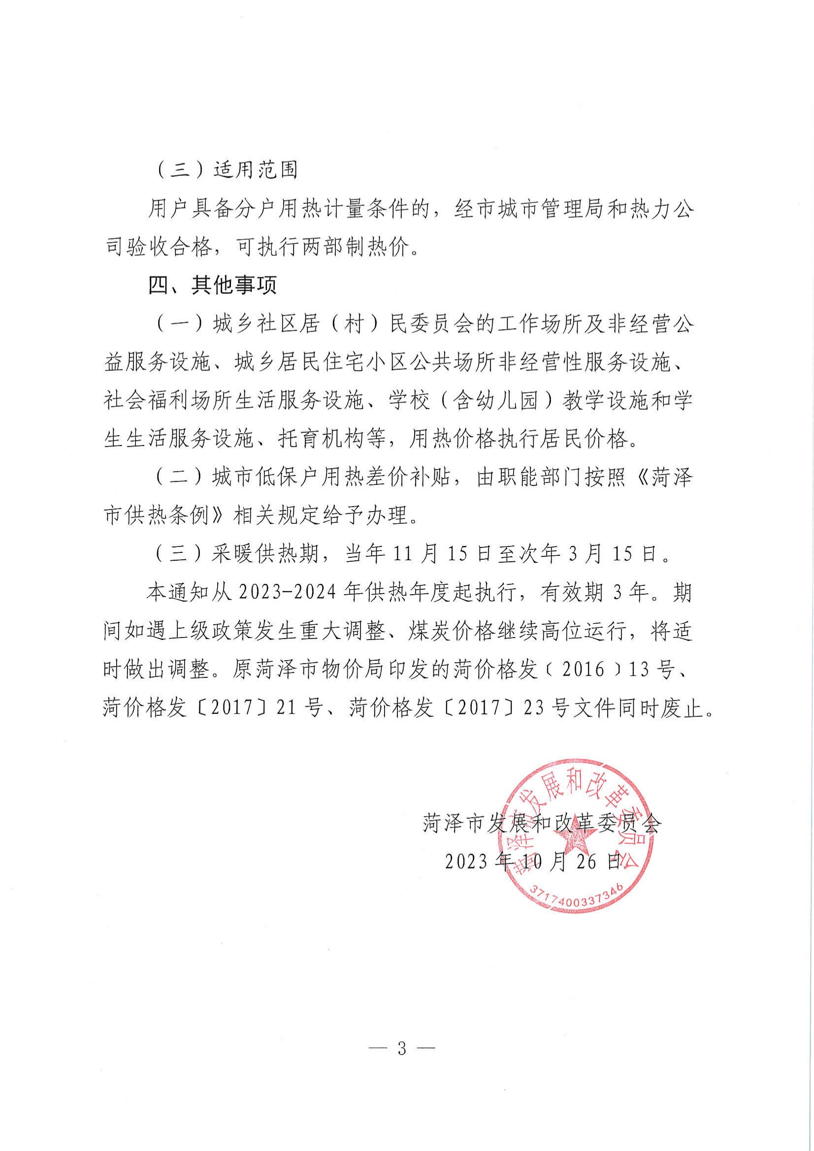 菏澤城區(qū)集中供暖熱費繳費標準為:居民采暖到戶價格為 24 元/平方米,城市低保戶采暖到戶價格為 20元/平方米,按套內建筑面積或專有建筑面積計費;非居民采暖到戶價格為 30 元/平方米,按建筑面積計費。