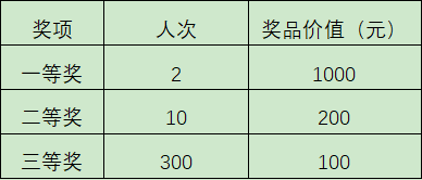 4.三等獎,人數(shù):400名,獎勵:價值100元的獎品;